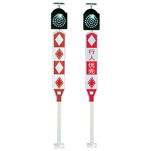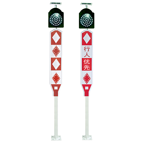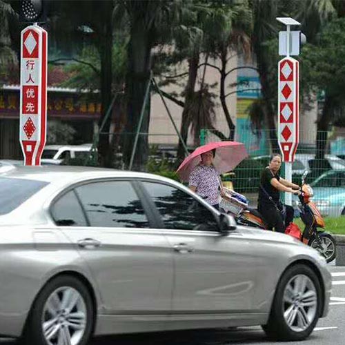 通常安裝在一些交通要道、道路分流、合流處,學(xué)校門口、人行橫道及一些標志不明顯的危險地段。以警示行人或車輛,達到減少交通事故的效果